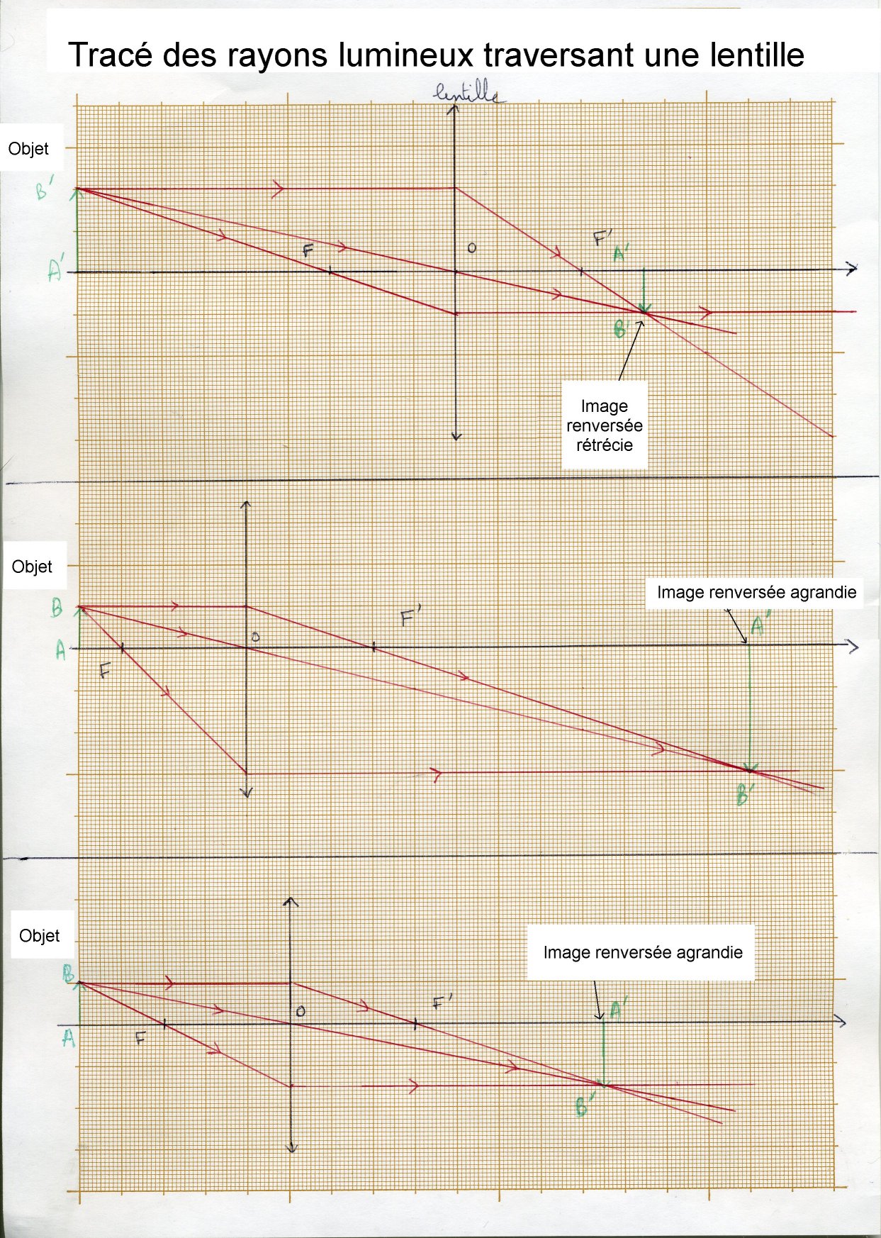 Pour repérer la position d'une image à travers une lentille, il faut tracer deux des trois rayons cités ci-dessous.